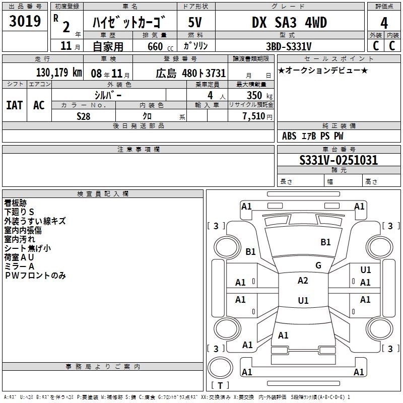 Статус выставлен на аукцион Лот 3019 Аукцион TAA Hiroshima Дата аукциона 09.12.2025