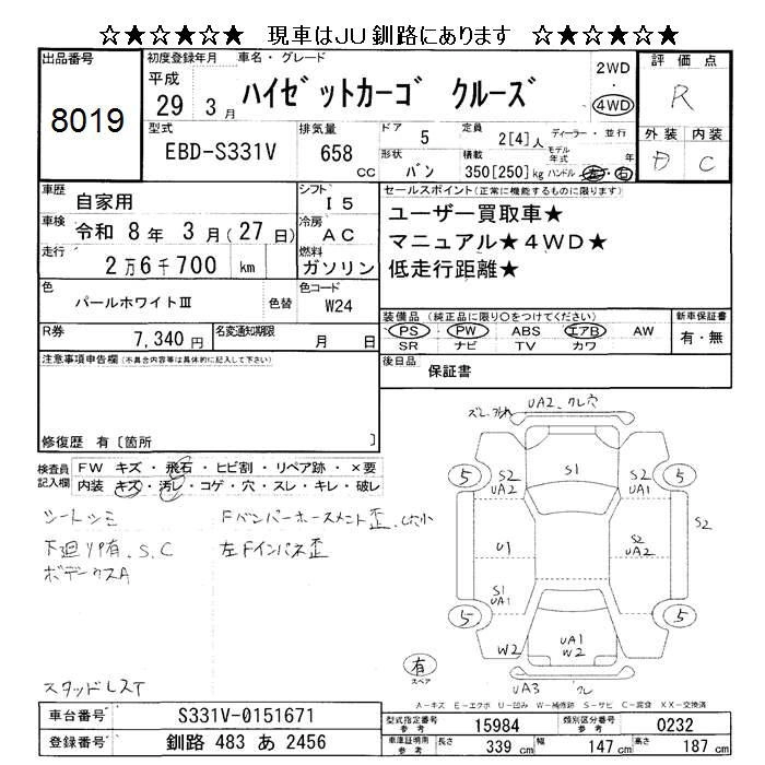 Статус продан Лот 8019 Аукцион JU Hokkaido Дата аукциона 23.01.2026