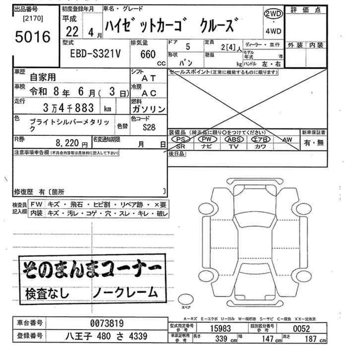 Статус выставлен на аукцион Лот 5016 Аукцион JU Tokyo Дата аукциона 26.01.2026