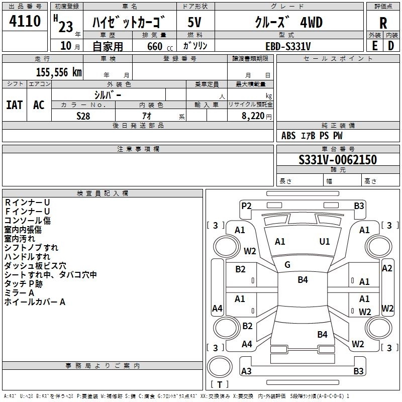 Год выпуска2011 Пробег 156 000 км КузовS331V Комплектация CRUISE 4WD