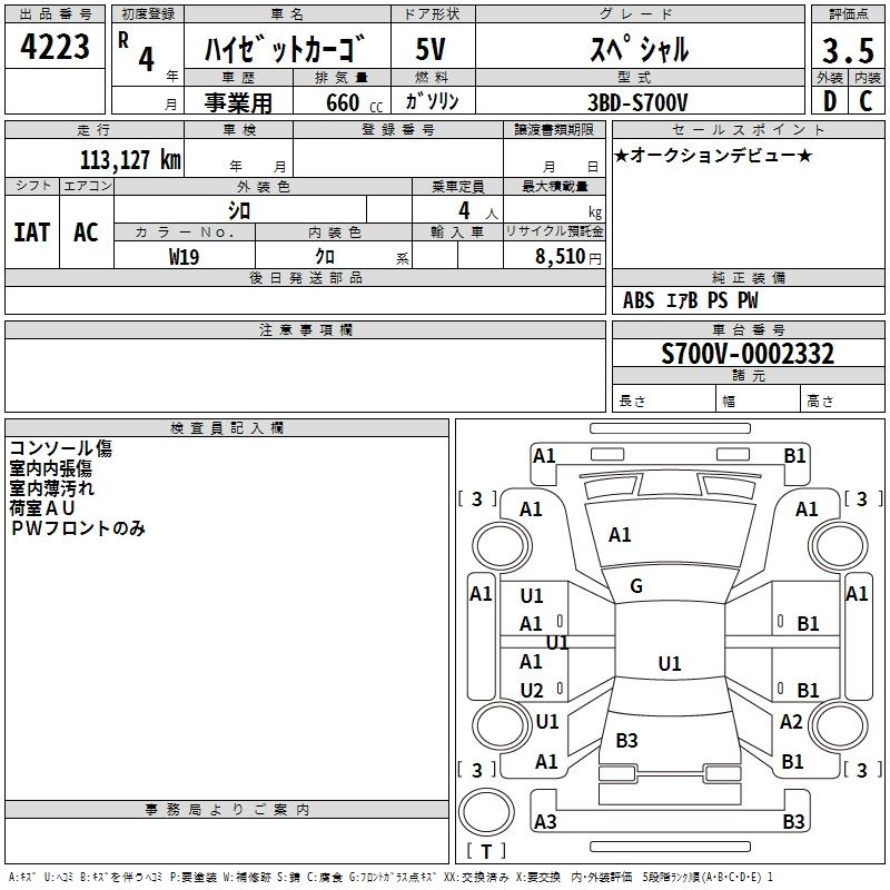 Статус выставлен на аукцион Лот 4223 Аукцион TAA Hiroshima Дата аукциона 10.03.2026
