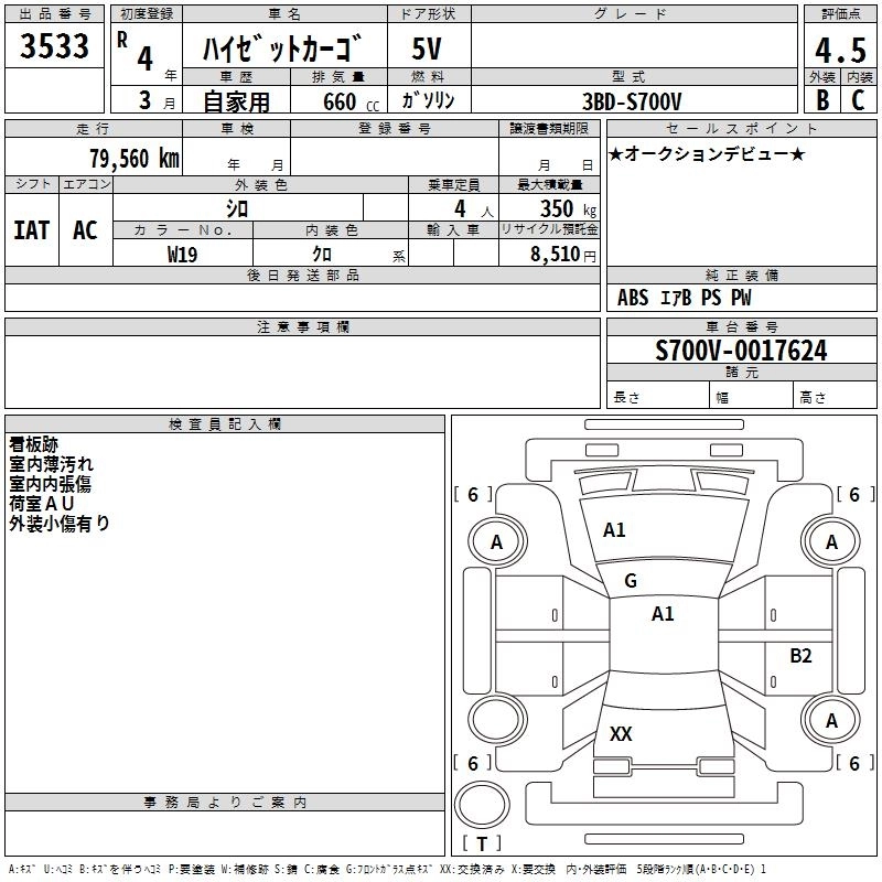 Итоговая цена авто на аукционе 643 000 ¥