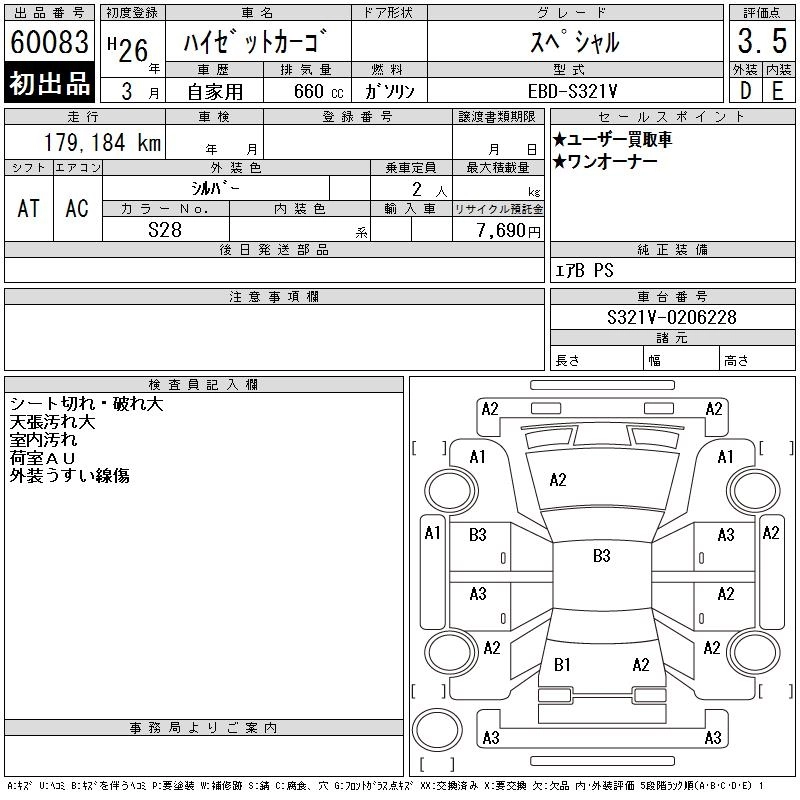 Статус выставлен на аукцион Лот 60083 Аукцион CAA Gifu Дата аукциона 10.03.2026