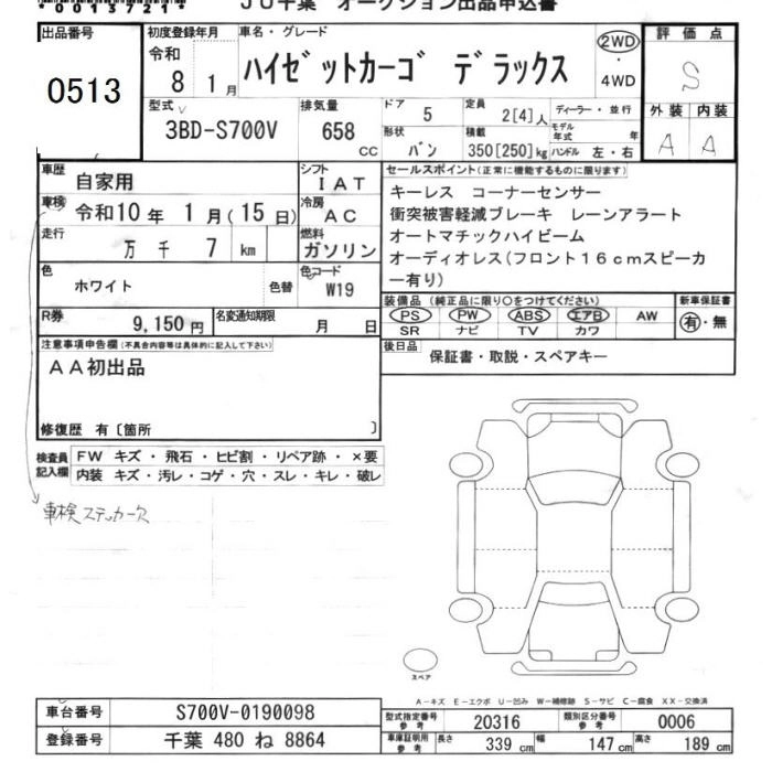 Статус выставлен на аукцион Лот 513 Аукцион JU Chiba Дата аукциона 13.03.2026