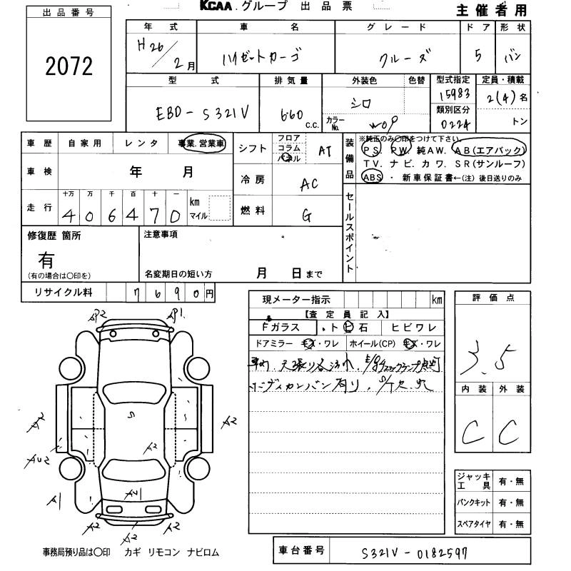 DAIHATSU HIJET CARGO 2014 г., лот № 2072