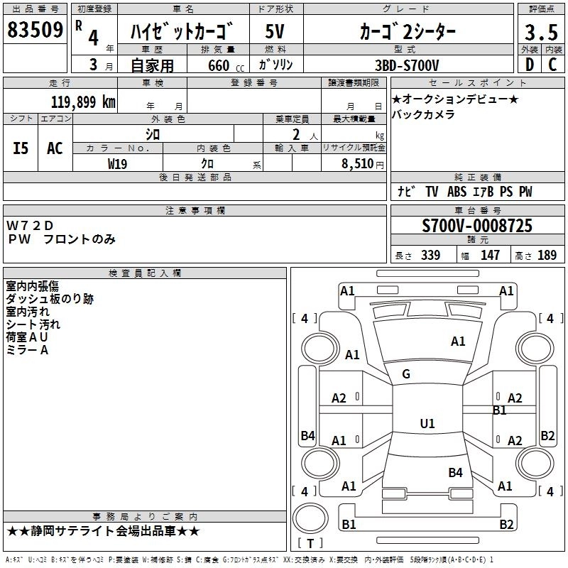 Статус выставлен на аукцион Лот 83509 Аукцион TAA Chubu Дата аукциона 19.03.2026