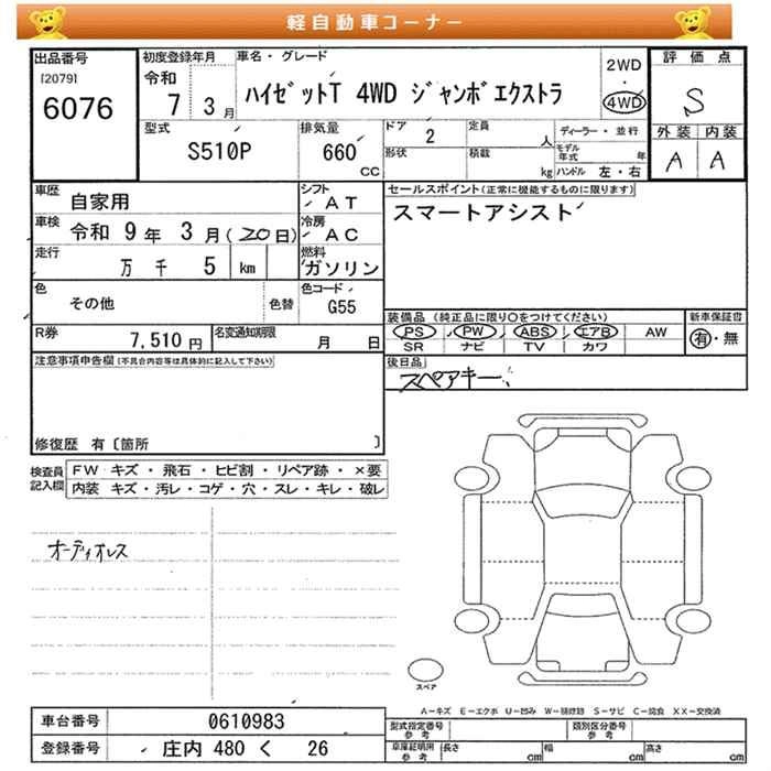 Год выпуска2025 КузовS510P Комплектация4WD JUMBO EXTRA