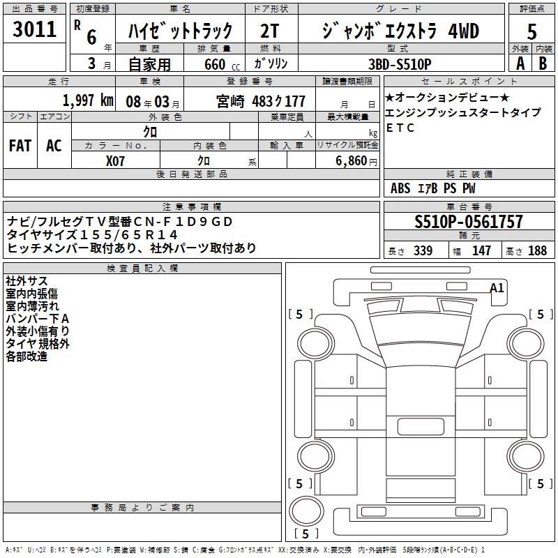Год выпуска2024 Пробег 2 000 км КузовS510P Комплектация JUMBO EXTRA 4WD