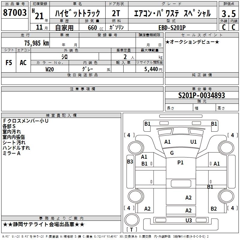 Год выпуска2009 Пробег 76 000 км КузовS201P Комплектация AIR CONDITIONER * POWER STEERING SPECIAL