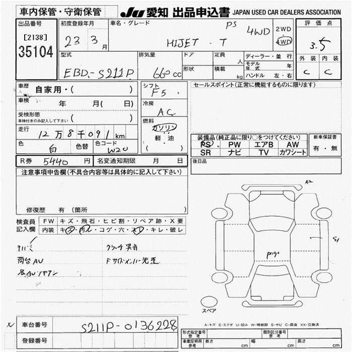 Статус продан Лот 35104 Аукцион JU Aichi Дата аукциона 11.12.2025