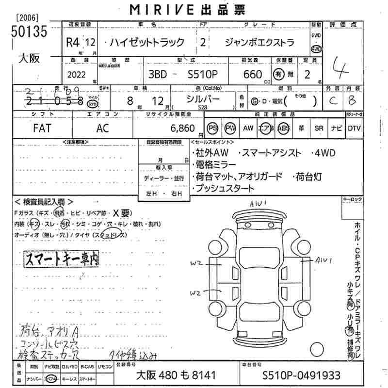 Год выпуска2022 Пробег 21 000 км КузовS510P Комплектация JUMBO EXTRA 4WD