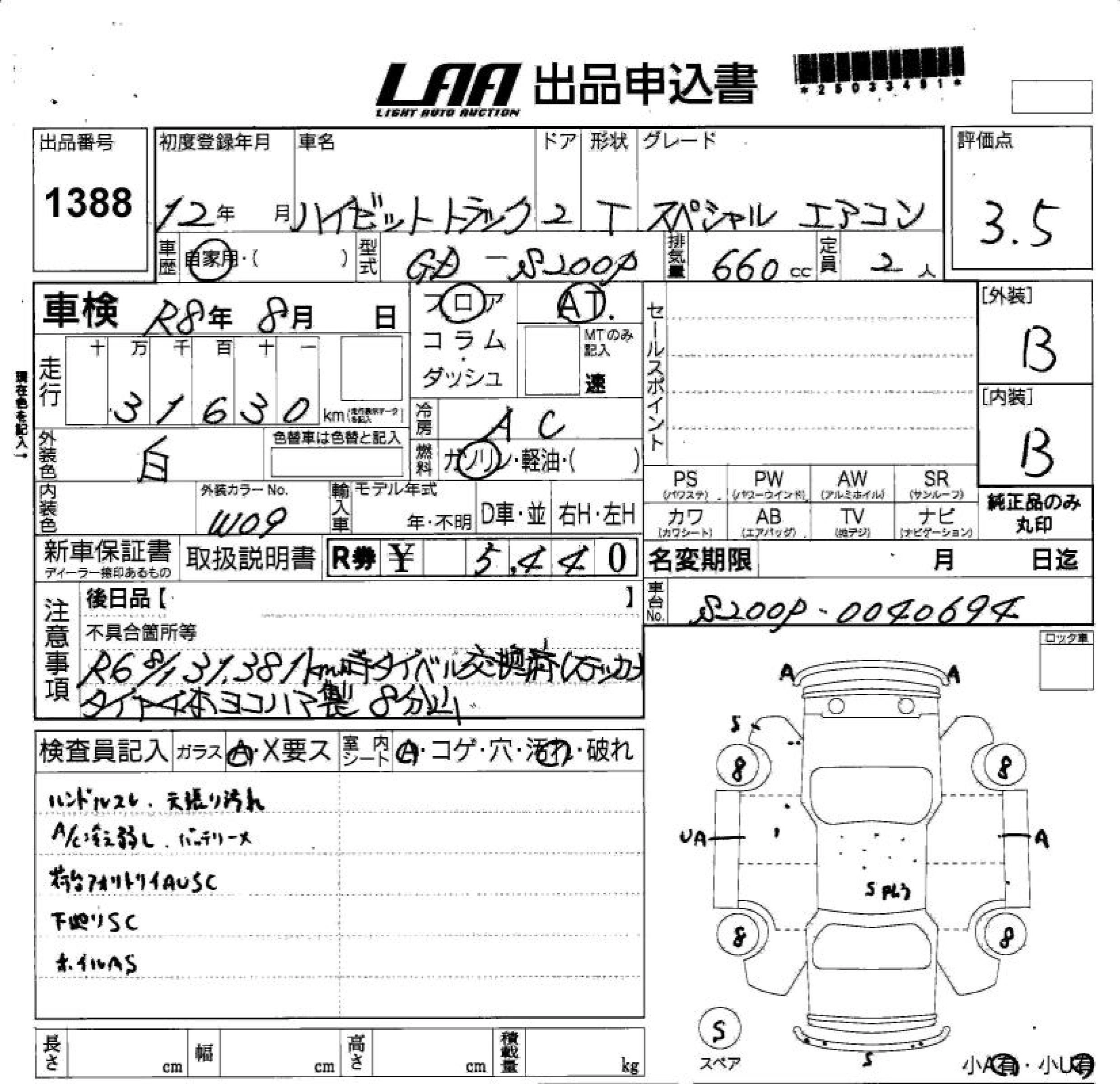Статус выставлен на аукцион Лот 1388 Аукцион LAA Shikoku Дата аукциона 17.12.2025
