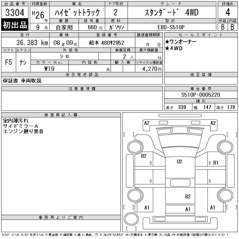 Год выпуска2014 Пробег 36 000 км КузовS510P Комплектация STANDARD 4WD