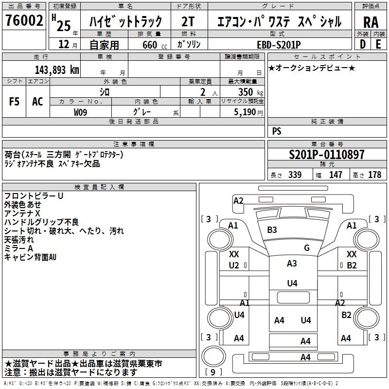DAIHATSU HIJET TRUCK 2013 г., лот № 76002