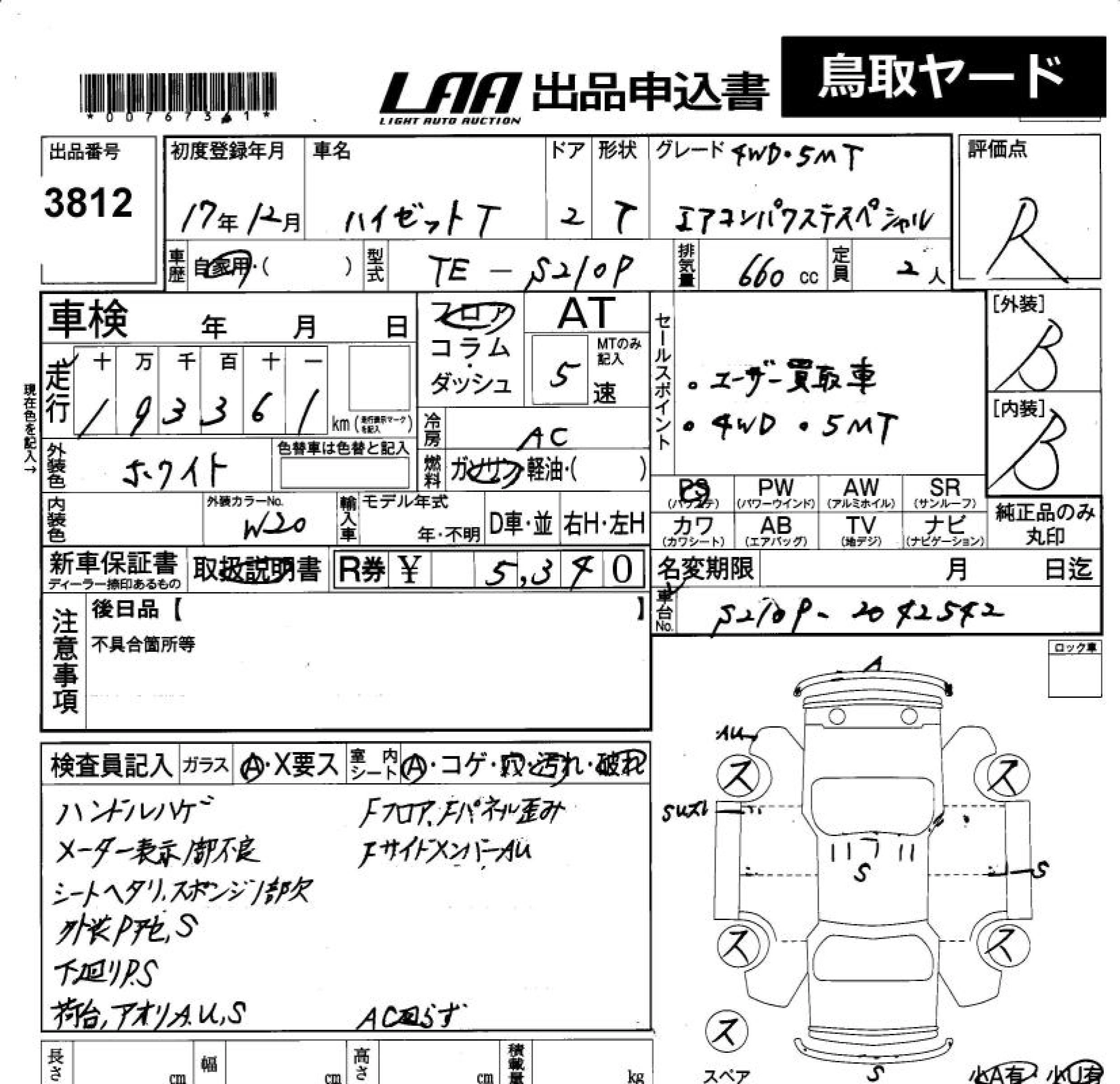 Статус продан Лот 3812 Аукцион LAA Okayama Дата аукциона 23.01.2026