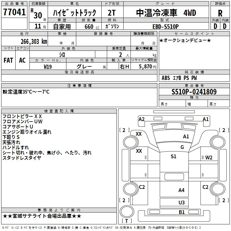 266 000 км КузовS510P КомплектацияFRP MIDDLE TEMPERATURE REFRIGERATOR CAR 4WD