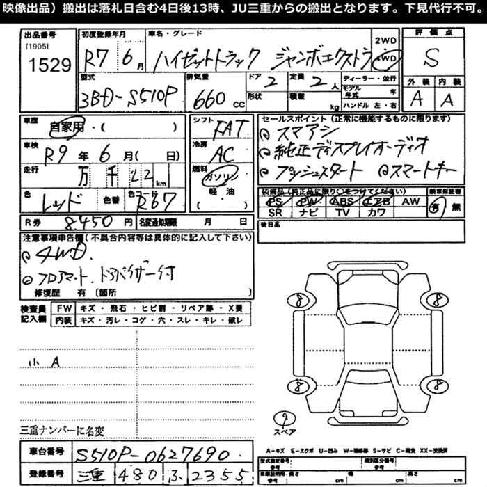 Год выпуска2025 КузовS510P Комплектация4WD JUMBO EXTRA
