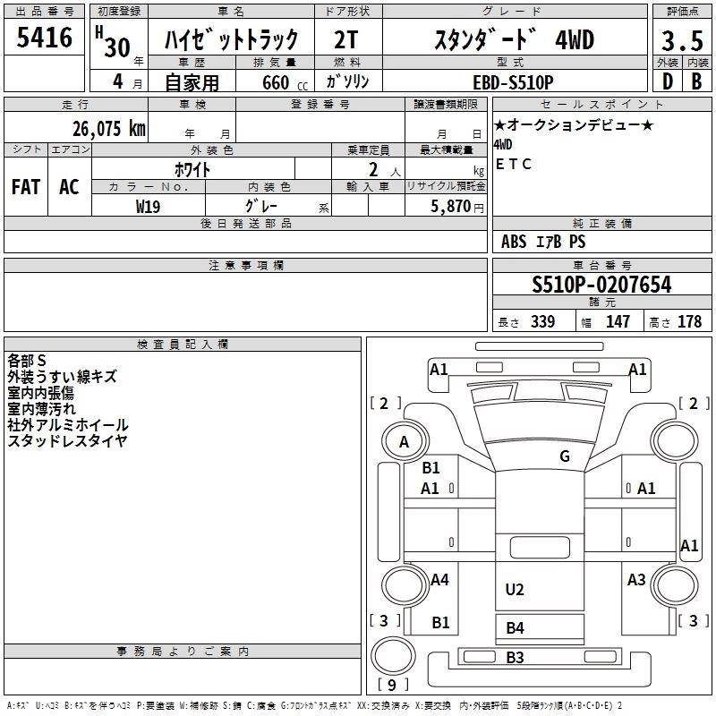 Год выпуска2018 Пробег 26 000 км КузовS510P Комплектация STANDARD 4WD