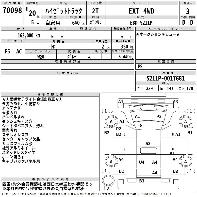 Статус выставлен на аукцион Лот 70098 Аукцион TAA Shikoku Дата аукциона 10.03.2026