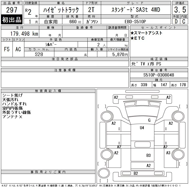 Год выпуска2020 Пробег 179 000 км КузовS510P Комплектация STANDARD SA3T 4WD