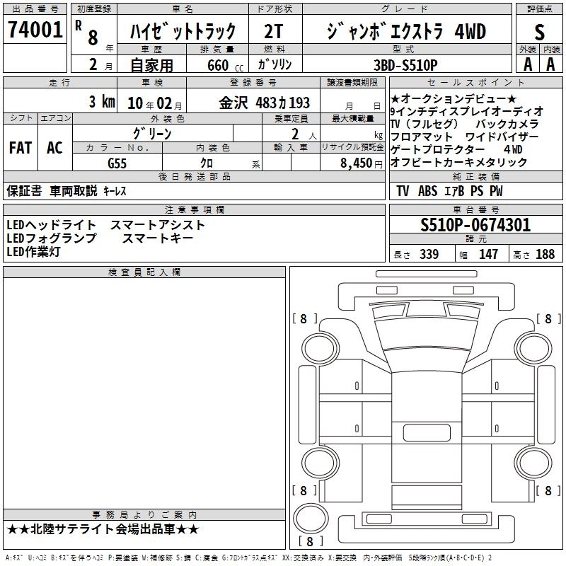 Год выпуска2026 КузовS510P Комплектация JUMBO EXTRA 4WD