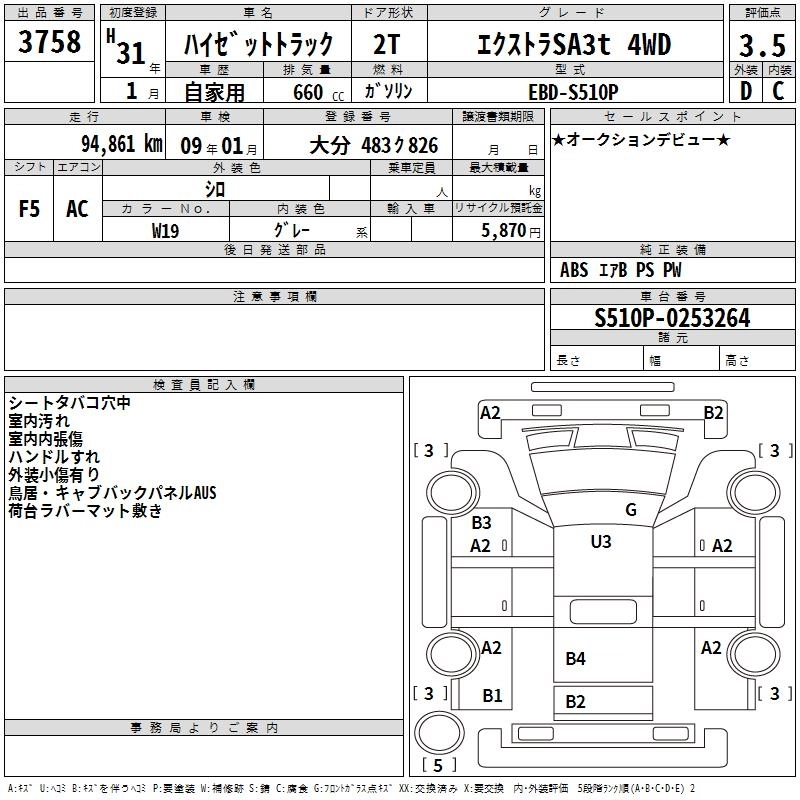 Год выпуска2019 Пробег 95 000 км КузовS510P Комплектация EXTRA SA3T 4WD
