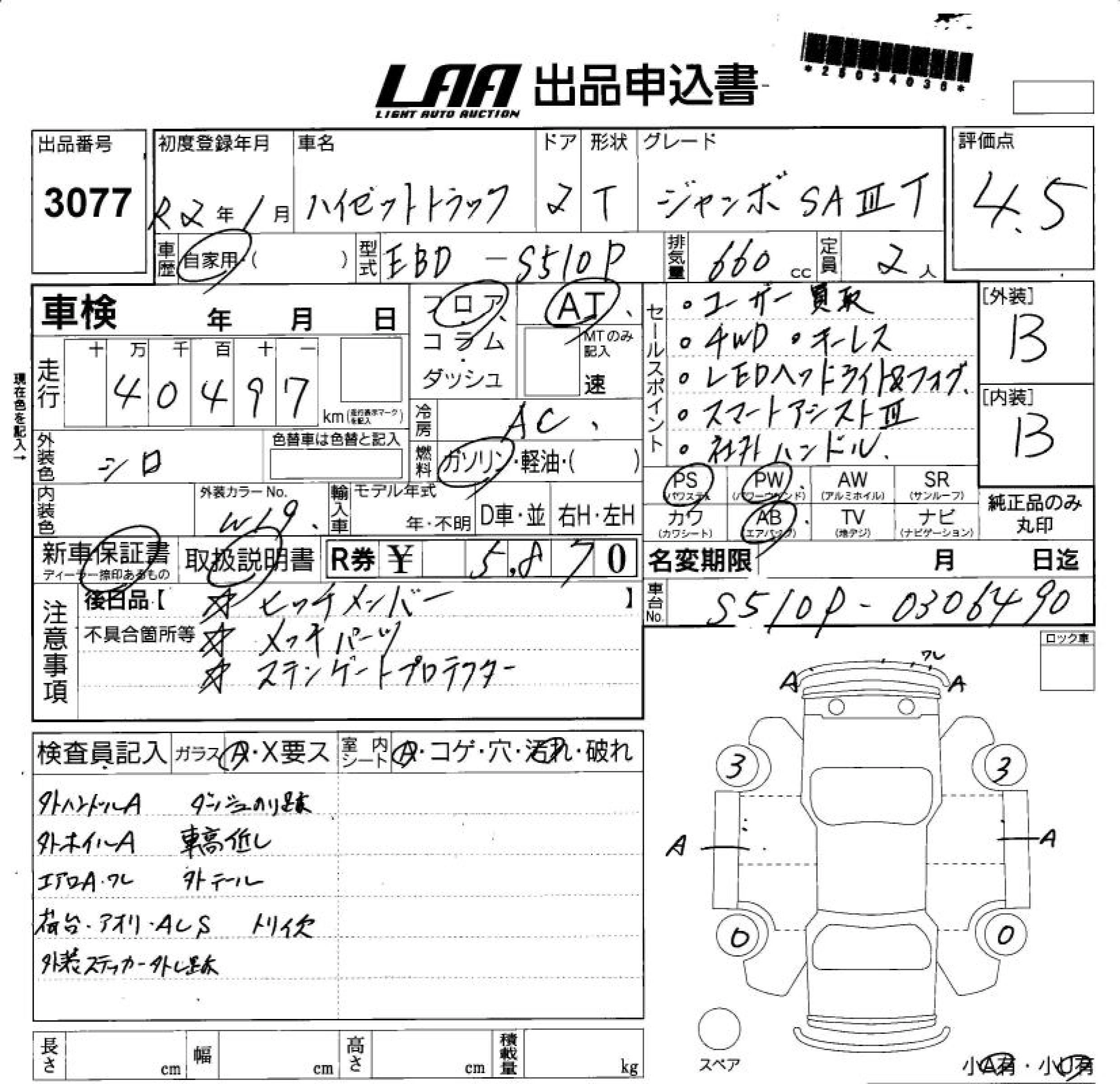 Статус выставлен на аукцион Лот 3077 Аукцион LAA Shikoku Дата аукциона 11.03.2026