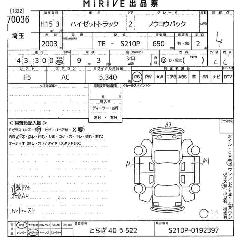 Статус выставлен на аукцион Лот 70036 Аукцион MIRIVE Saitama Дата аукциона 18.03.2026