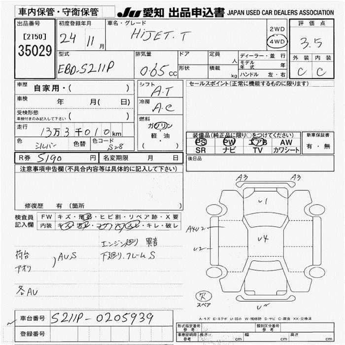Статус выставлен на аукцион Лот 35029 Аукцион JU Aichi Дата аукциона 19.03.2026