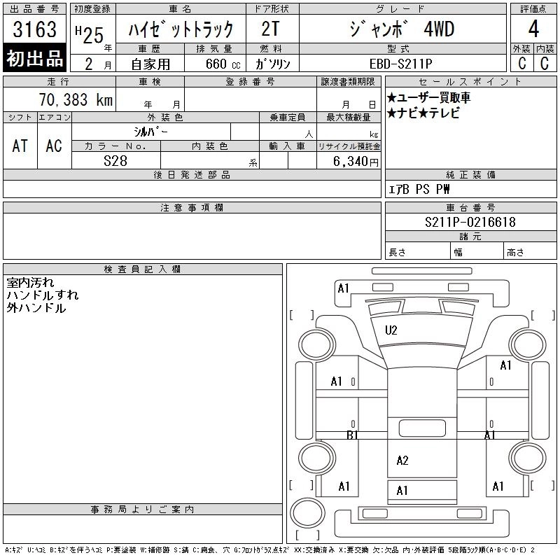 Год выпуска2013 Пробег 70 000 км КузовS211P Комплектация JUMBO 4WD
