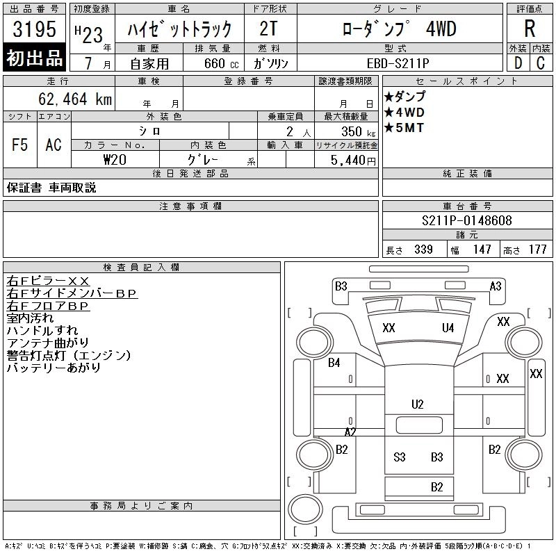 Год выпуска2011 Пробег 62 000 км КузовS211P Комплектация LOW DUMP 4WD