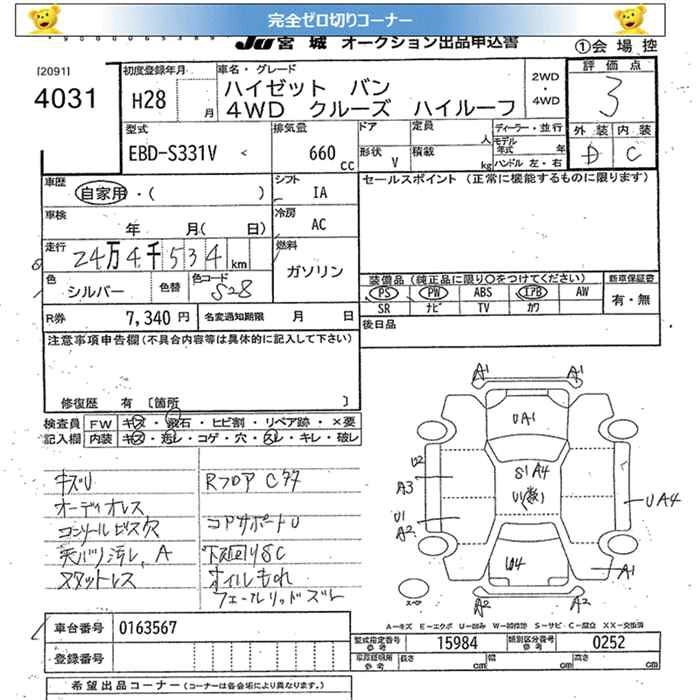 Год выпуска2016 Пробег 245 000 км КузовS331V Комплектация4WD CRUISE HIGH ROOF