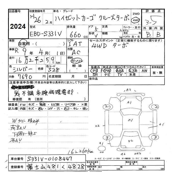 Год выпуска2014 Пробег 162 000 км КузовS331V Комплектация4WD CRUISE TURBO