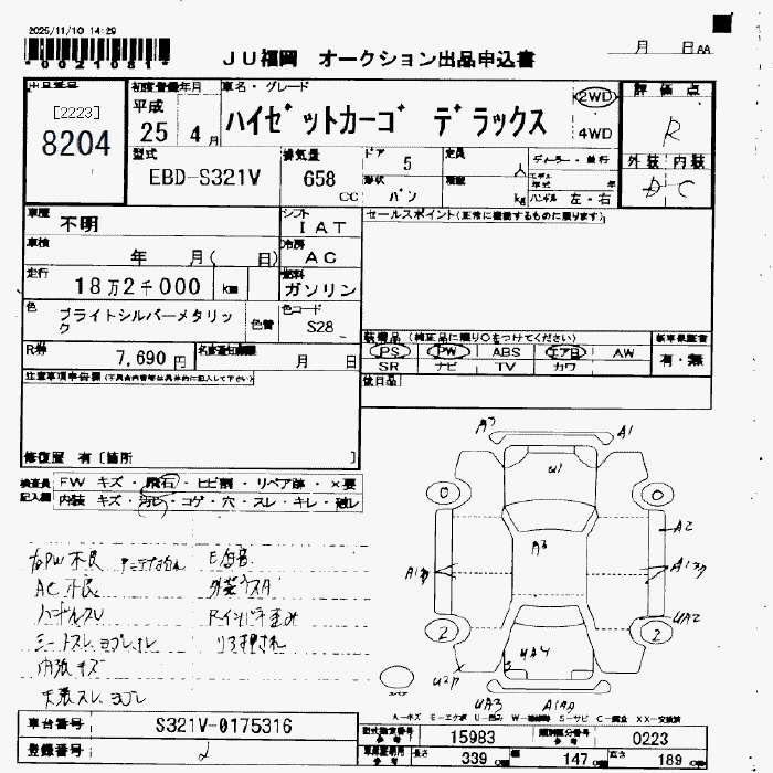 Статус продан Лот 8204 Аукцион JU Fukuoka Дата аукциона 14.11.2025