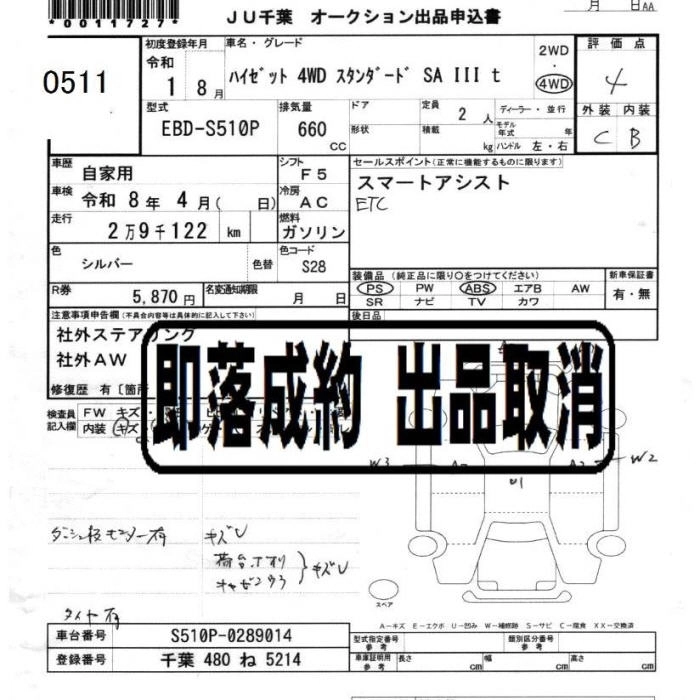 Статус не продан Лот 511 Аукцион JU Chiba Дата аукциона 21.11.2025