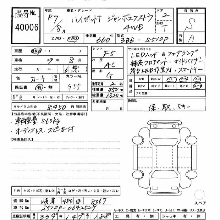 Год выпуска2025 КузовS510P Комплектация4WD JUMBO EXTRA