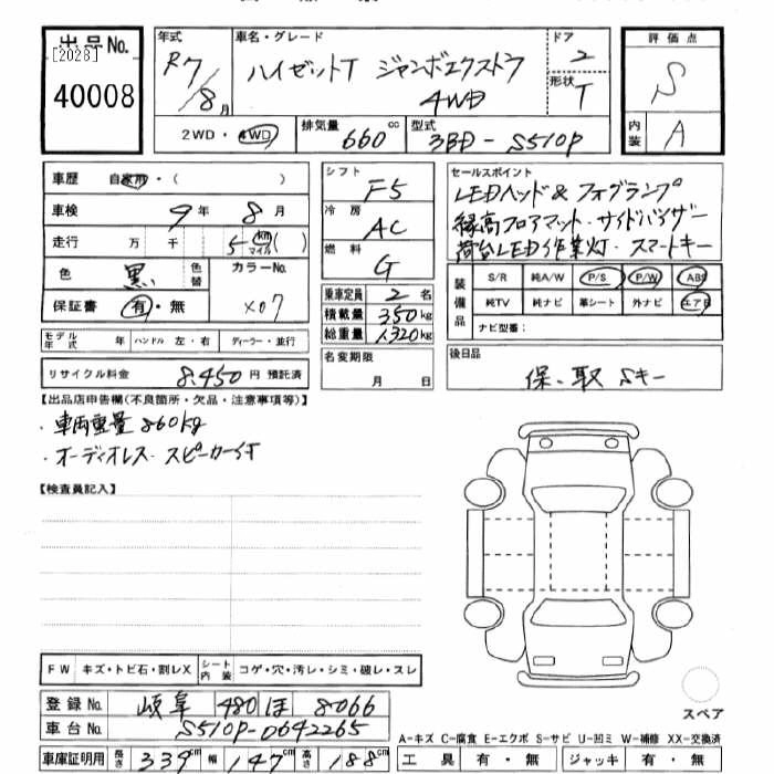 Год выпуска2025 КузовS510P Комплектация4WD JUMBO EXTRA