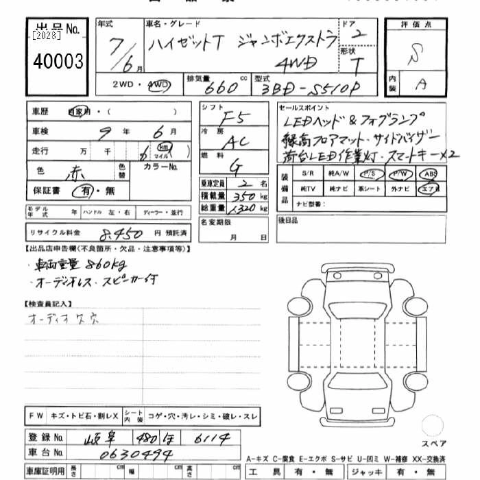 Год выпуска2025 КузовS510P Комплектация4WD JUMBO EXTRA
