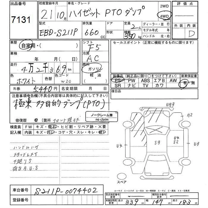 Год выпуска2009 Пробег 42 000 км КузовS211P Комплектация4WD PTO DUMP