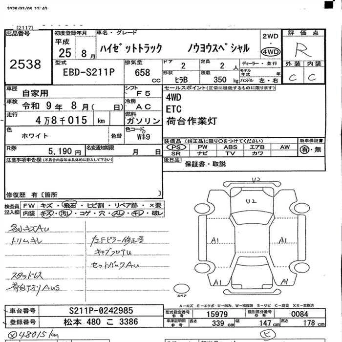 Статус выставлен на аукцион Лот 2538 Аукцион JU Nagano Дата аукциона 10.03.2026