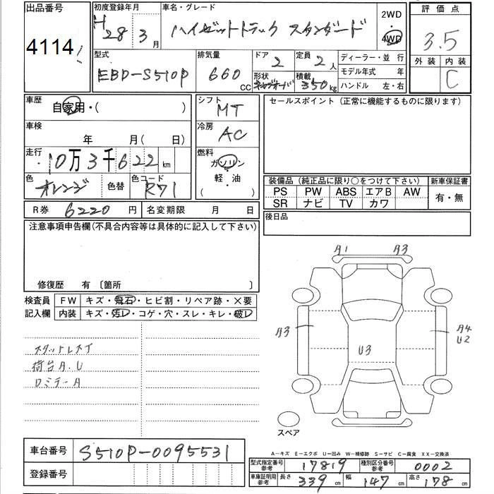 Год выпуска2016 Пробег 104 000 км КузовS510P Комплектация4WD STANDARD