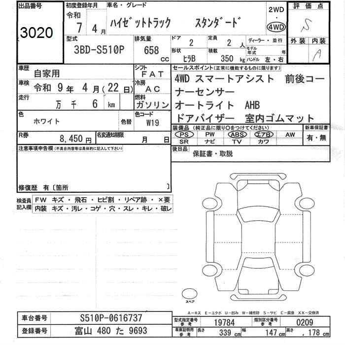 Статус выставлен на аукцион Лот 3020 Аукцион JU Toyama Дата аукциона 12.03.2026