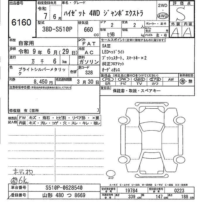 Год выпуска2025 КузовS510P Комплектация4WD JUMBO EXTRA