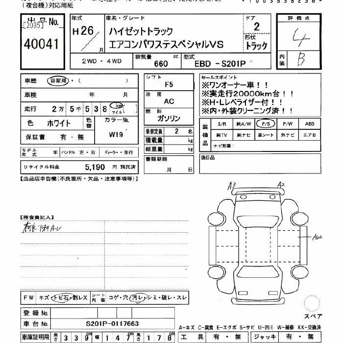 Год выпуска2014 Пробег 25 000 км КузовS201P Комплектация AIR CONDITIONER - POWER STEERING SPECIAL VS