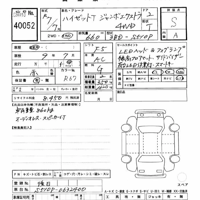Год выпуска2025 КузовS510P Комплектация4WD JUMBO EXTRA