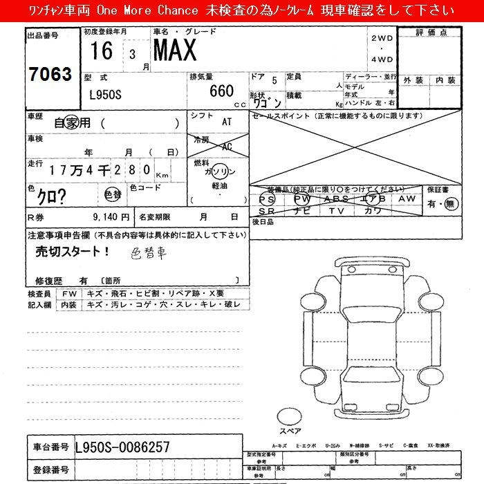 Статус выставлен на аукцион Лот 7063 Аукцион JU Shizuoka Дата аукциона 10.03.2026