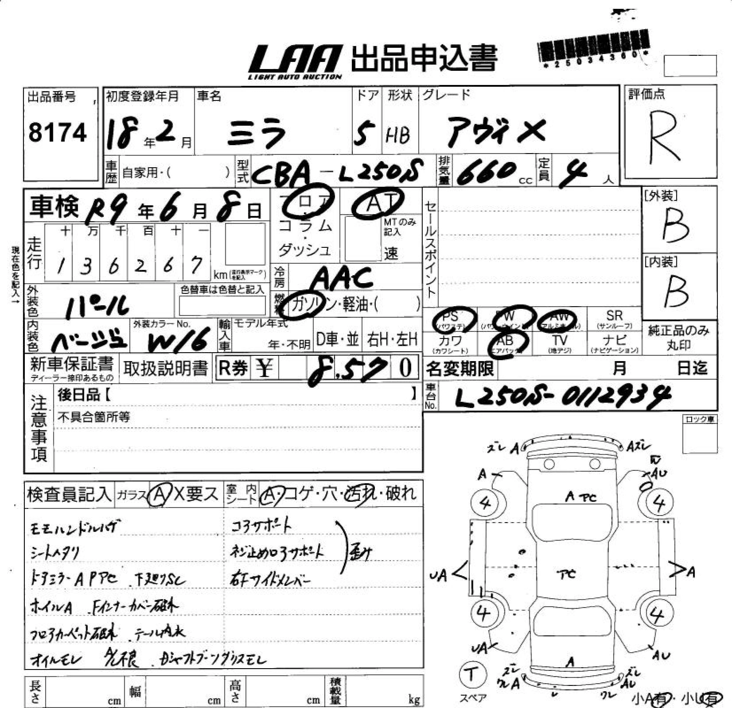 Статус выставлен на аукцион Лот 8174 Аукцион LAA Shikoku Дата аукциона 11.03.2026