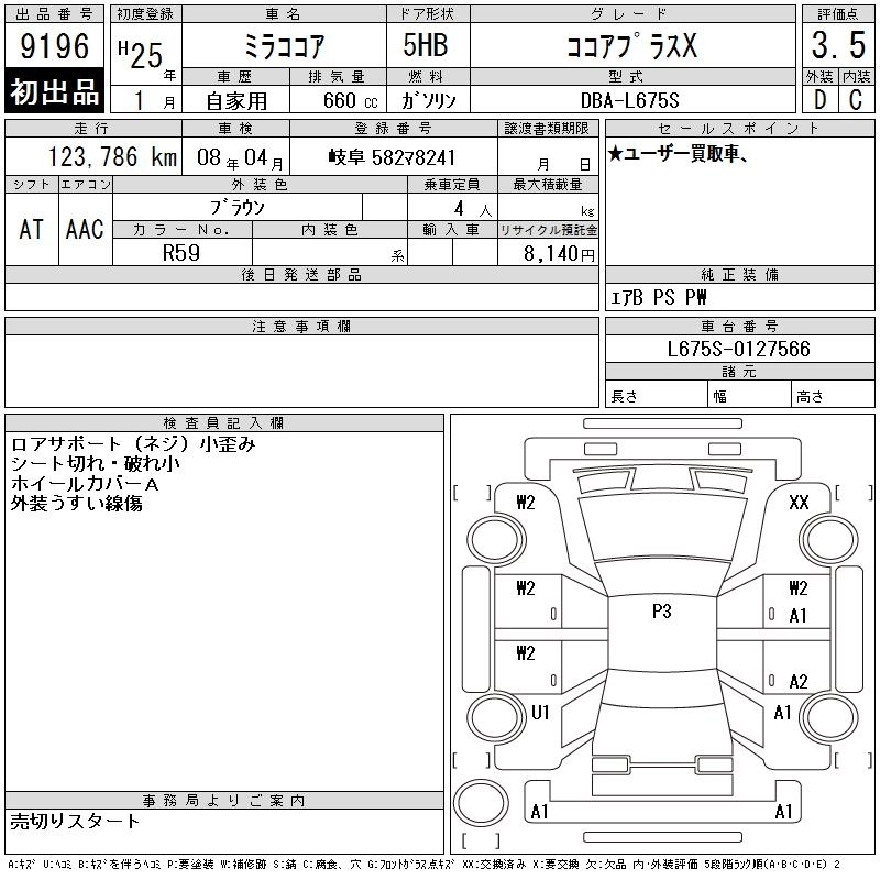 Статус выставлен на аукцион Лот 9196 Аукцион CAA Chubu Дата аукциона 22.10.2025