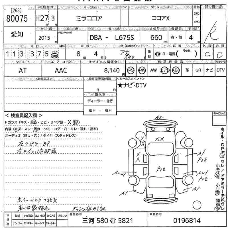 DAIHATSU MIRA COCOA 2015 г., лот № 80075