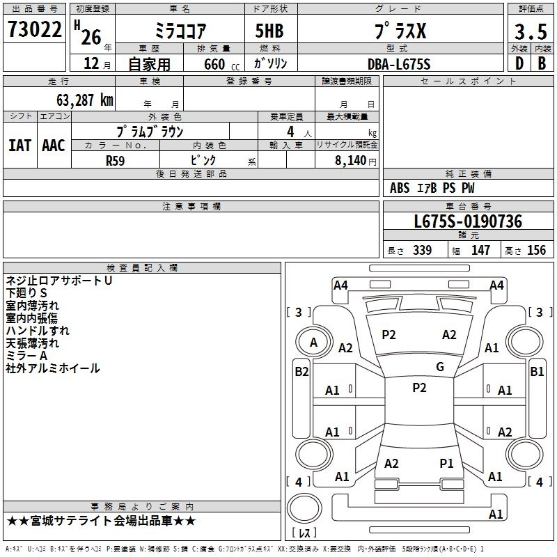 DAIHATSU MIRA COCOA 2014 г., лот № 73022